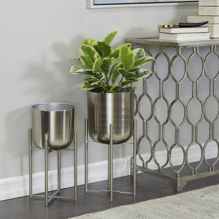 Decmode 19 22 H Indoor Outdoor Deep Recessed Dome Silver Metal Planter With Removable Stand 2 Count Walmart Com